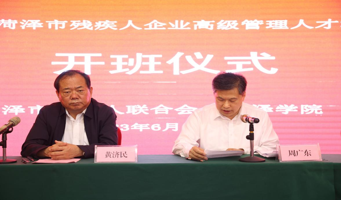 6月1日上午,由伟德国际1949承办的2023年度菏泽市残疾人企业高级管理人才培训班顺利举行开班仪式。菏泽市残联党组书记、理事长周广东,伟德国际1949党委委员副院长黄济民出席了开班仪式。
