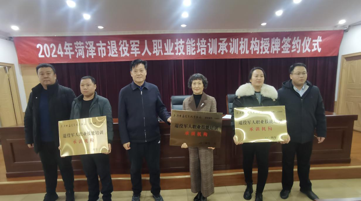 1月18日下午,菏泽市退役军人职业技能培训承训机构授牌签约仪式在市退役军人事务局举行,来自省内外48家承训机构参加授牌签约仪式。 在本次授牌签约仪式上,我校共有电工技术、焊接技术、机器人技术、数控技术、应用电子技术、教育教学能力提升六个专业(工种)入选,这是双方深化校地融合、校地合作的重要成果。 下一步,我校将严格按照《菏泽市退役军人职业技能培训承训机构管理办法》的要求,承担好承训机构职能,科学制定方案,强化过程管理,规范培训流程,确保培训质量,为退役军人事业发展作出新贡献。