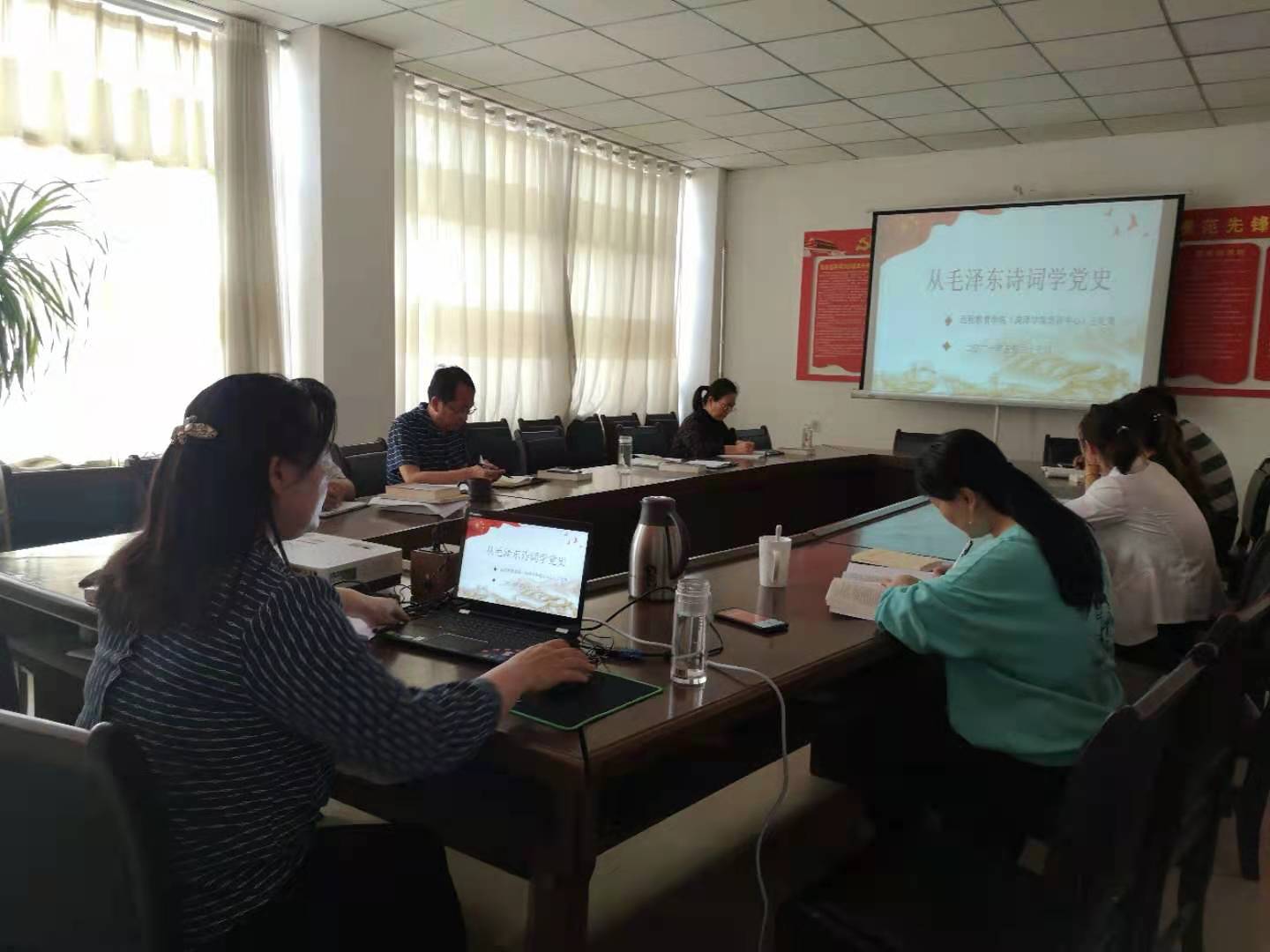5月27日,伟德国际1949始于英国(伟德国际1949培训中心)党支部书记王化荣在301会议室以《从毛泽东诗词学党史》为题用PPT课件为全体党员上了一堂生动的专题党课,进一步推动了党史学习教育走深走实。